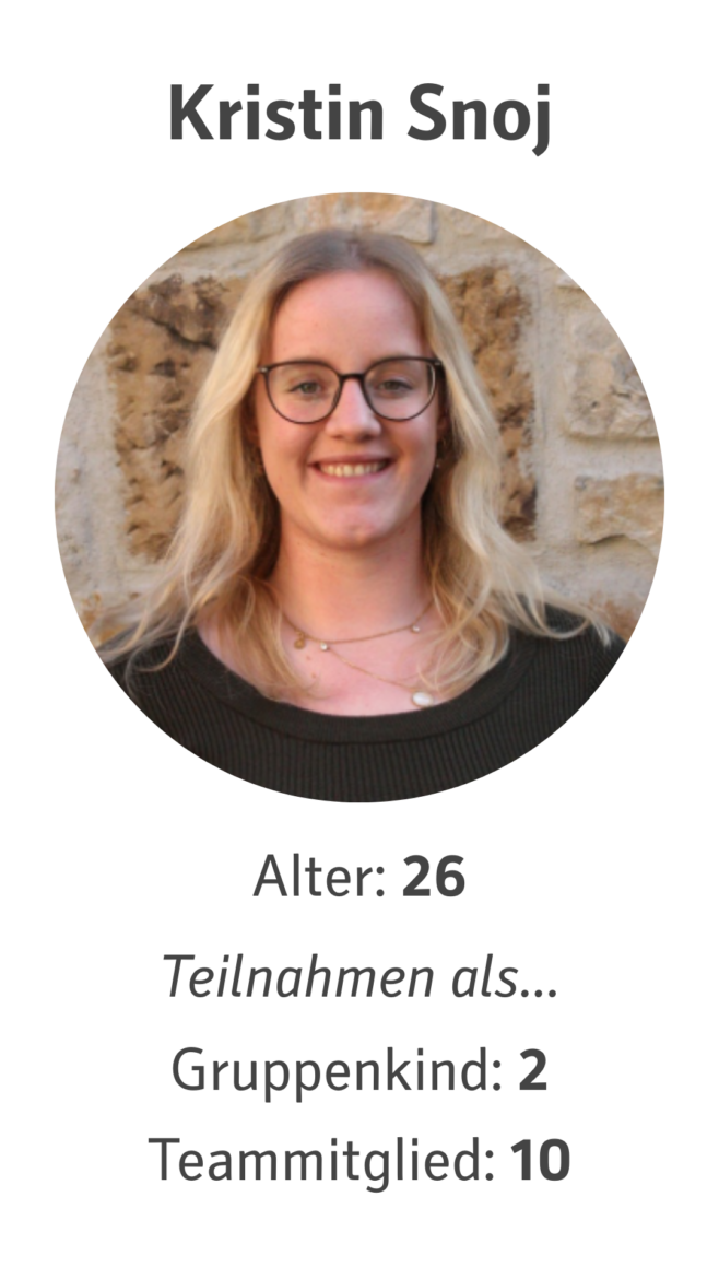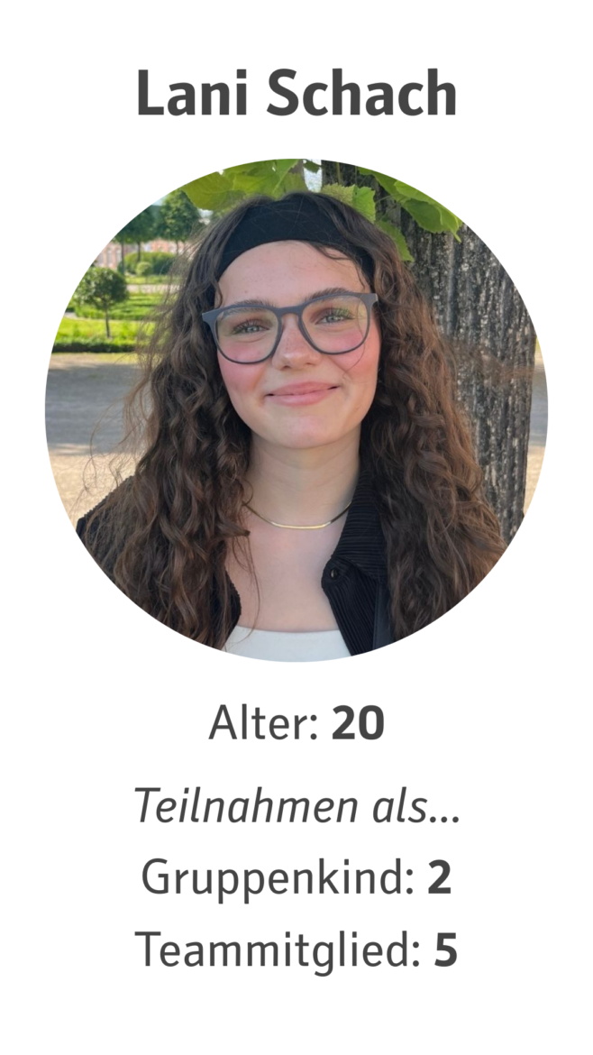 Besonders freue ich mich darauf, nach drei Jahren als Gruppenleiterin nun zum ersten Mal als Lagerleitung dabei zu sein. Ich bin gespannt auf diese neue Erfahrung und freue mich darauf, sie nicht nur gemeinsam mit unserem Team, sondern auch mit den Kindern zu machen!
